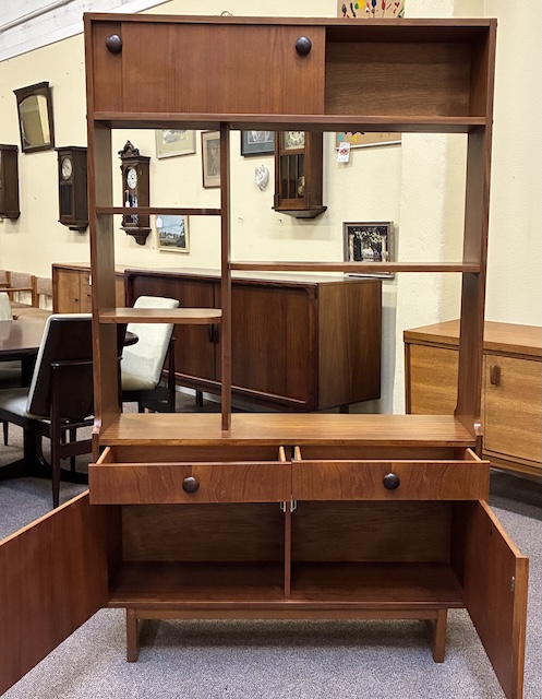 Item #AH108 European Mid Century Modern Free Standing Teak Room Divider / Wall Unit by Stonehill, UK c.1960