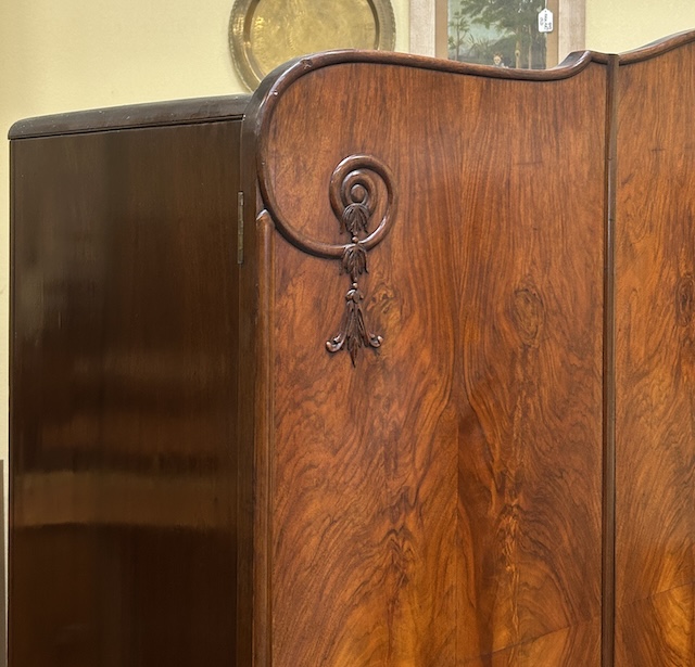 Item #AH123 Antique English Walnut Triple Door Armoire w/ Interior Shelves & Open Hanging c.1920
