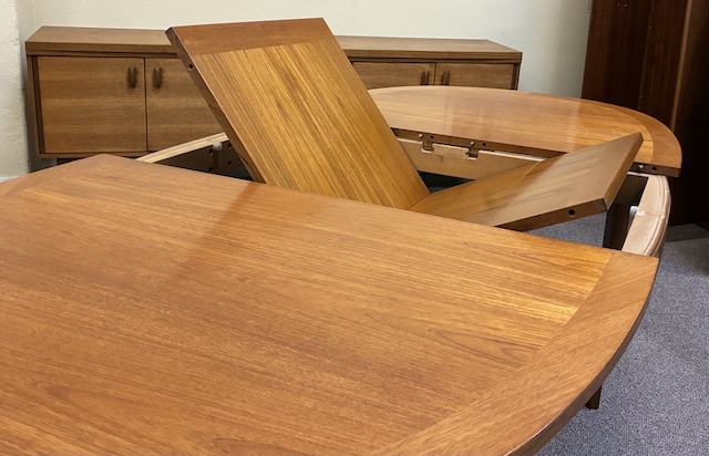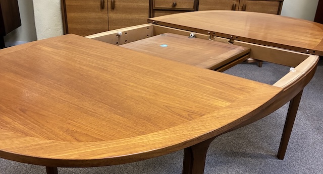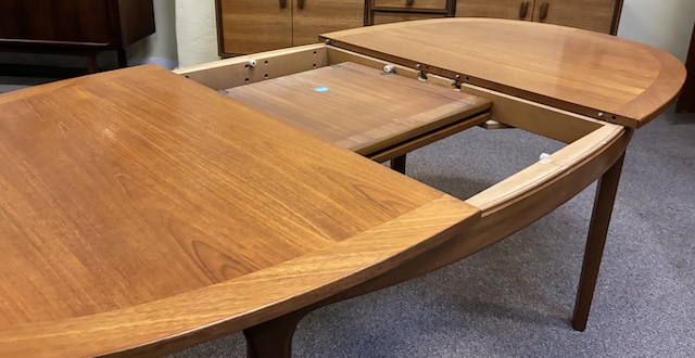 Item #AH18 Mid Century Modern Extending Teak Dining Table w/ Butterfly Leaf by Nathan, UK c.1970