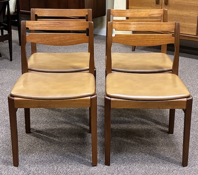 Item #AH19 Set of Four Mid Century Modern Teak Frame Dining Chairs by Nathan c.1960