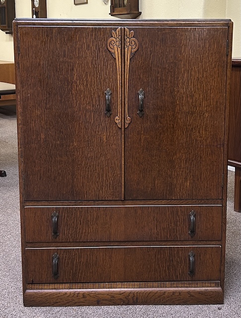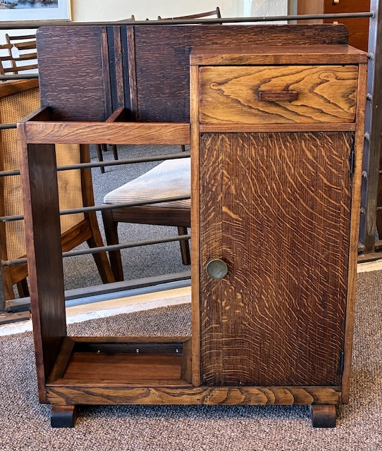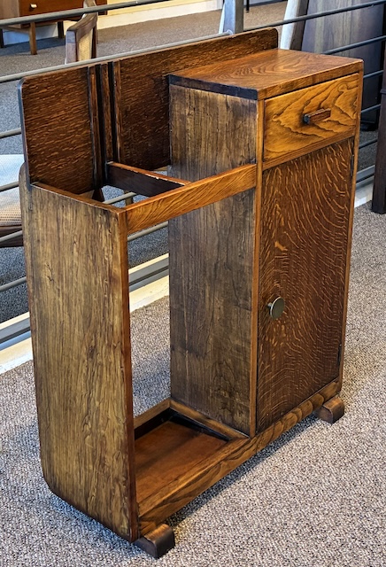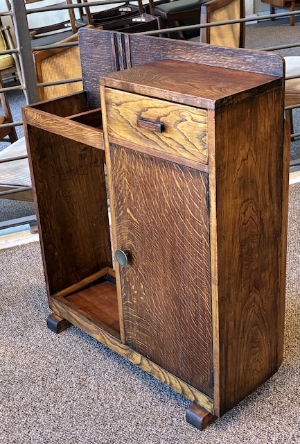 Item #AH41 English Oak Art Deco Umbrella / Cane Stand w/ Drawer & Cabinet c.1940