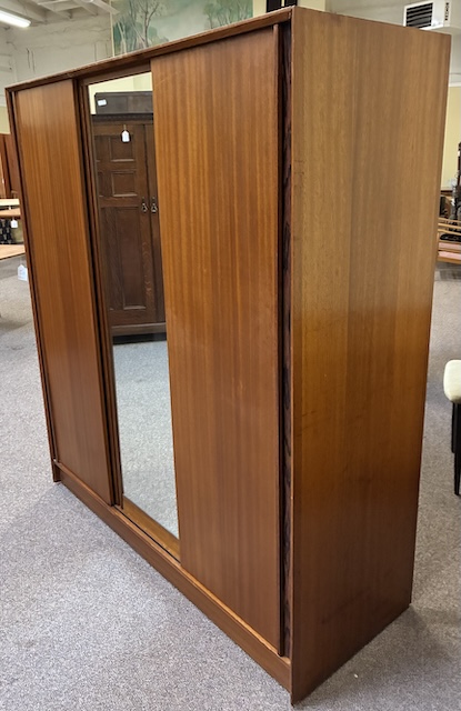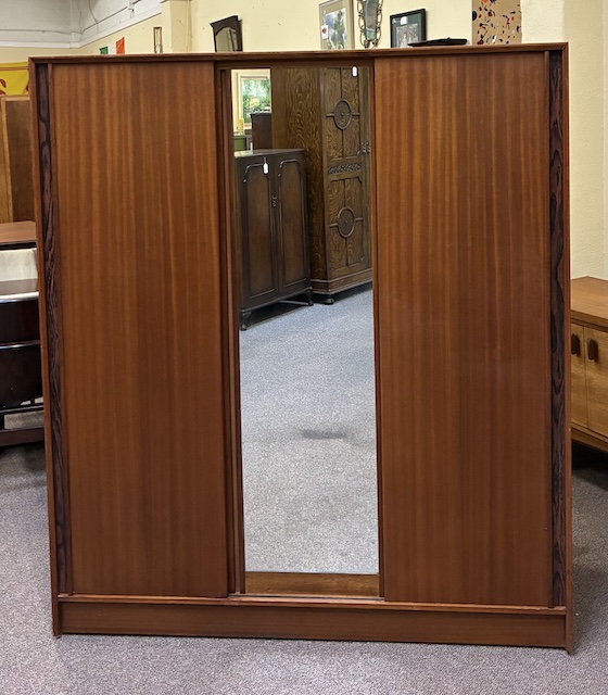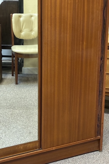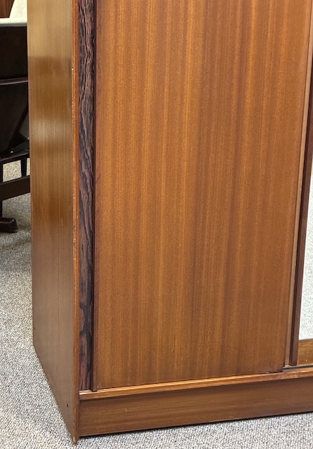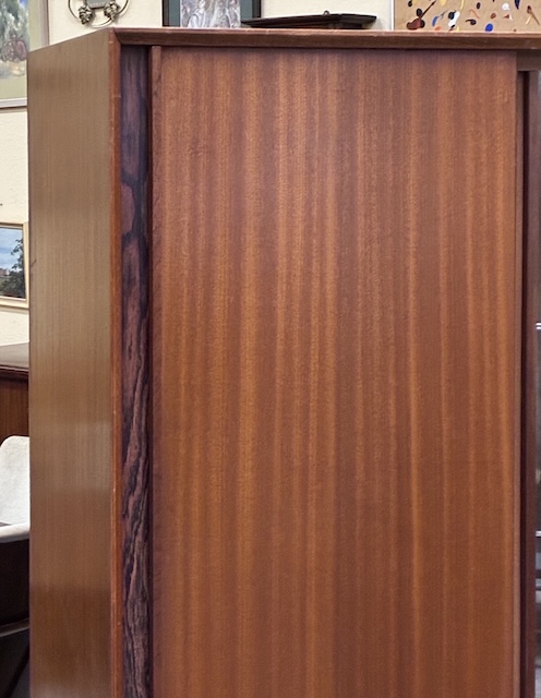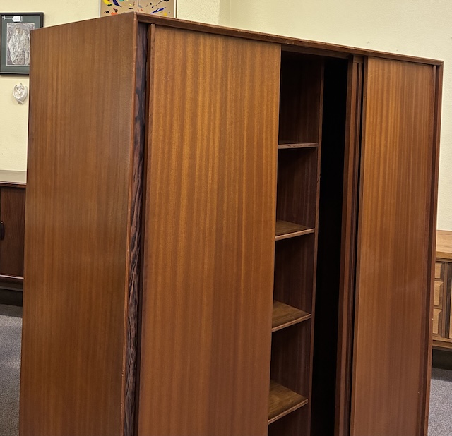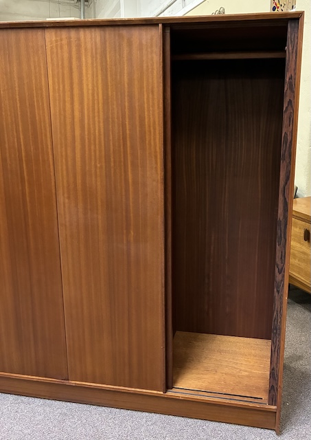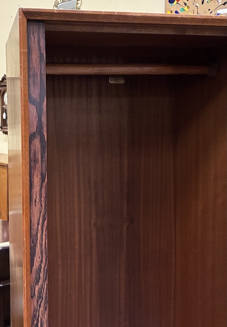 Item #AH43B Mid Century Modern Triple Door Teak Armoire w/ African Teak Trim c.1960