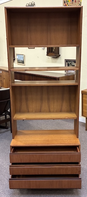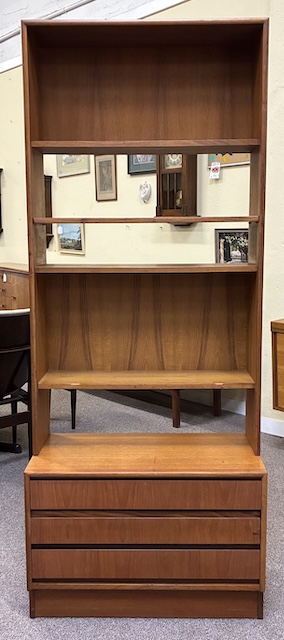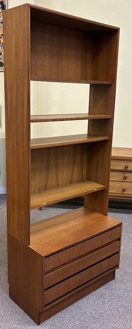 Item #AH49 Mid Century Modern Teak Wall Unit w/ Shelves over Drawers c.1960