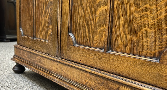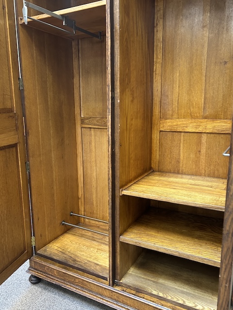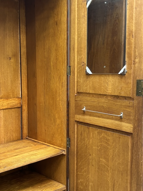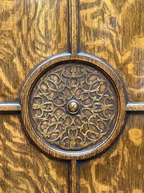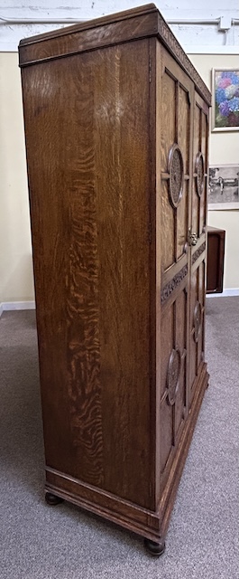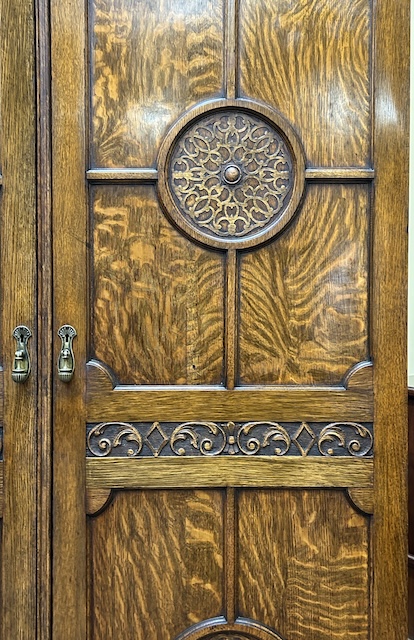 Beautiful Arts & Crafts Armoire - Solid Oak - Beautiful Tiger Stripe Panels w/ Pokerwork Trim