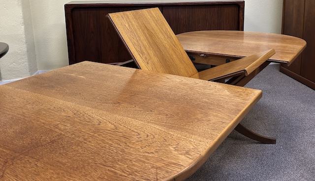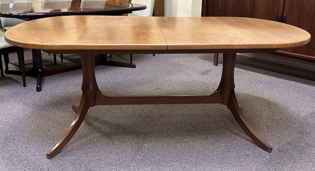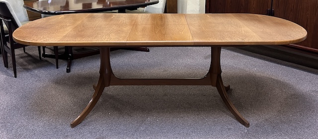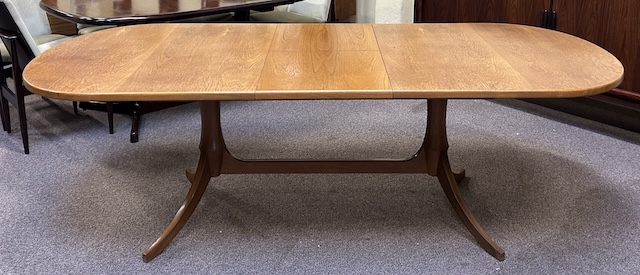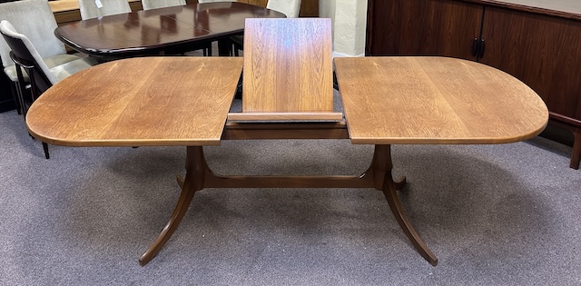Item #AH52 Mid Century Modern Extending Teak Dining Table on Double Pedestal Base by Graeves & Thomas, UK c.1960