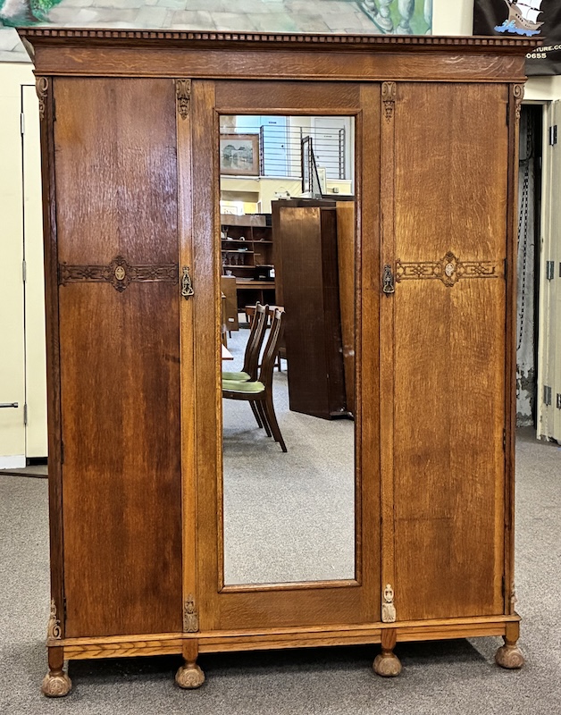 Vintage English Oak Art Deco Double Door Armoire c.1940