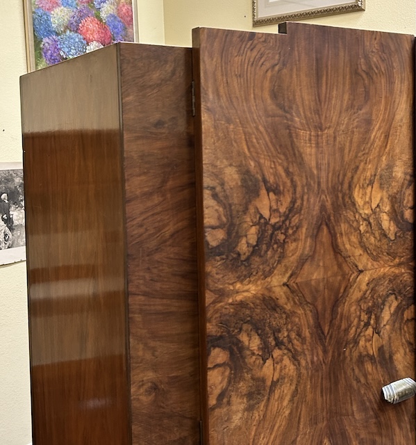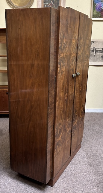 Item #AH8 Vintage Art Deco Burl Walnut Double Door Robe c.1940