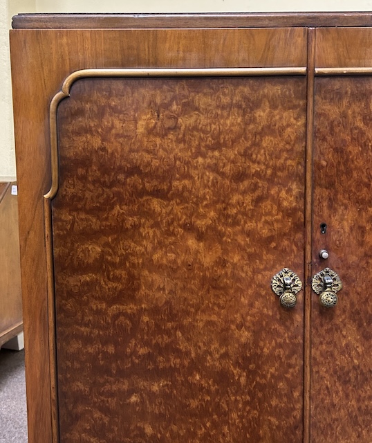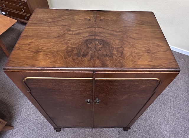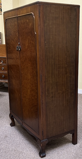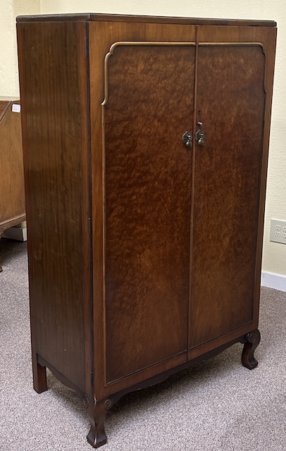 Item #AH83A Vintage Art Deco Burl Walnut Tallboy w/ Fitted Interior c.1940