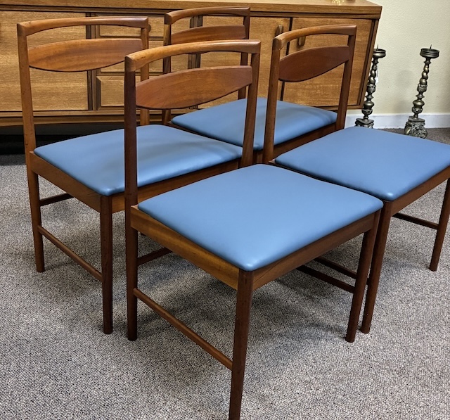 Item #AH88 Set of Four Mid Century Modern Teak Framed Dining Chairs by McIntosh , UK c.1960