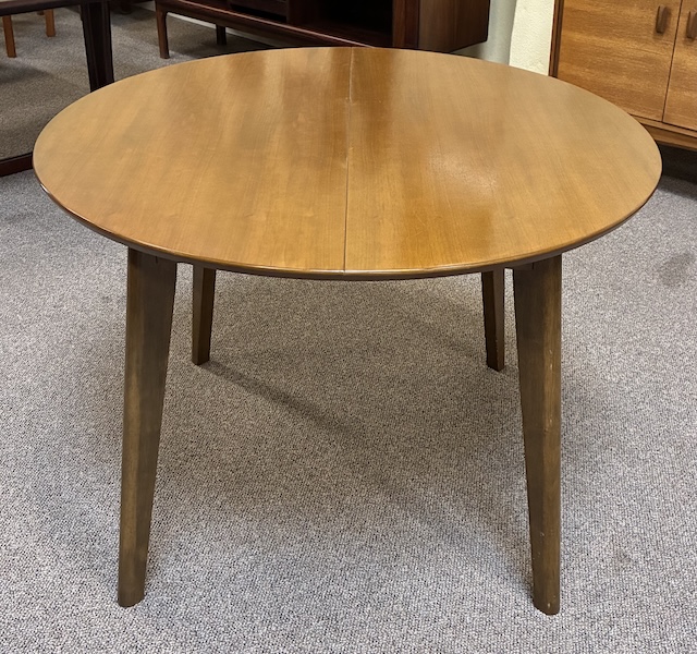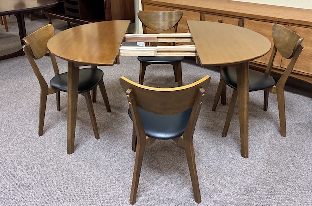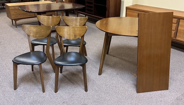 Item #AS1 Contemporary Round Extending Dining Table w/ Single Leaf & Four Matching Chairs