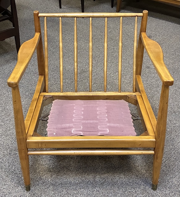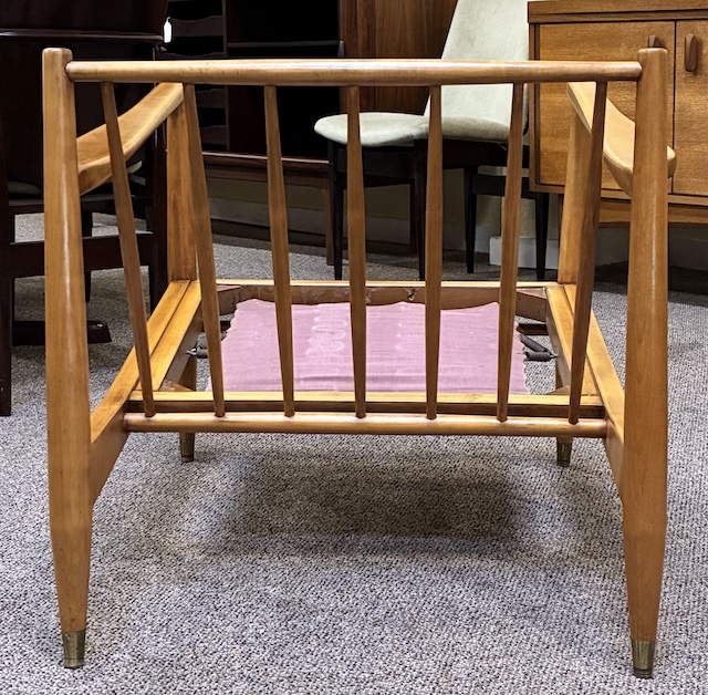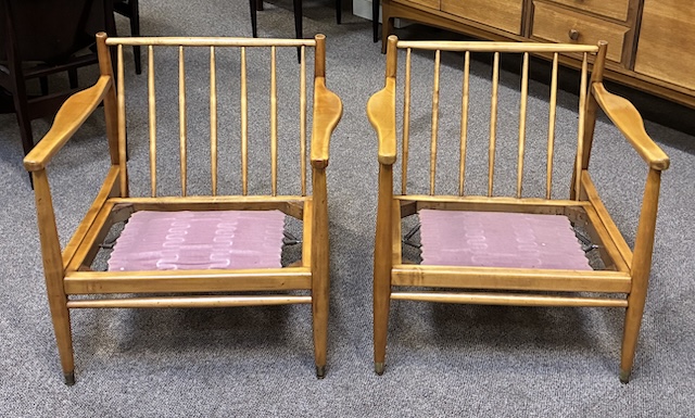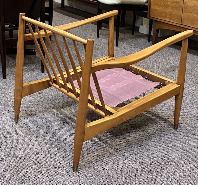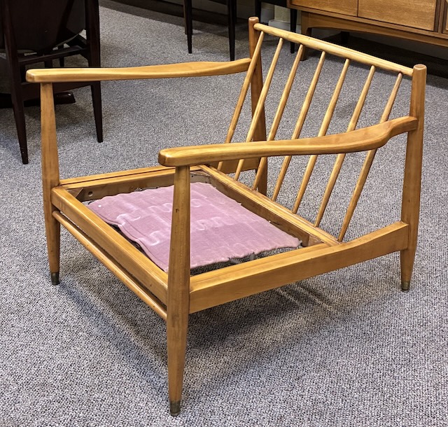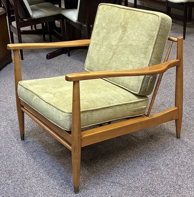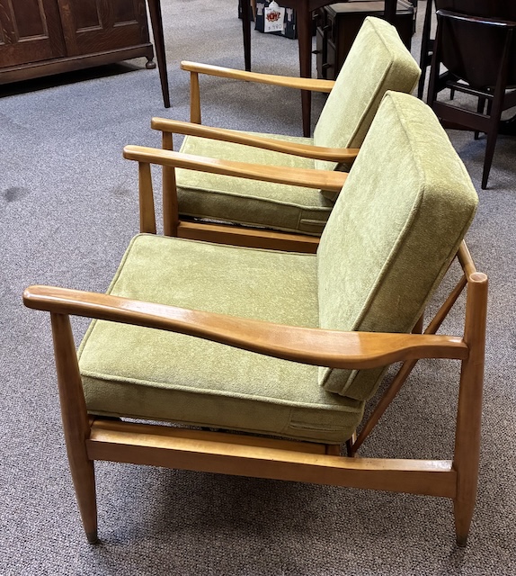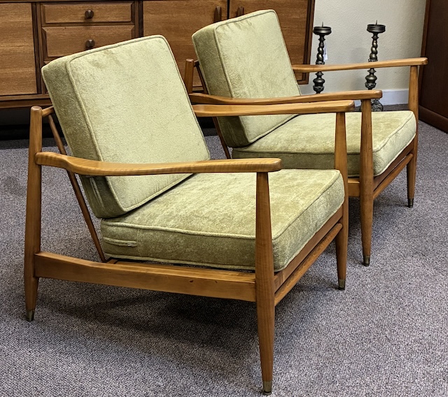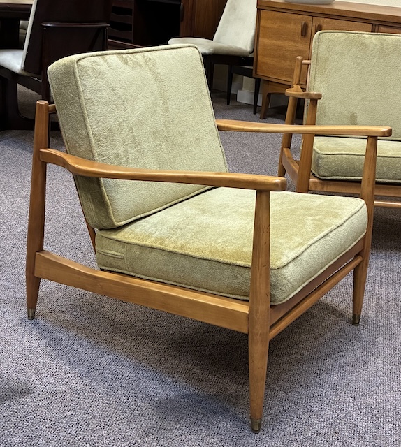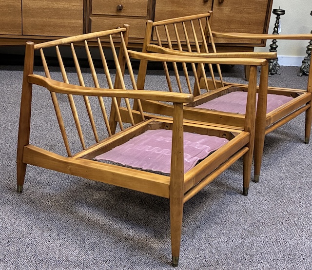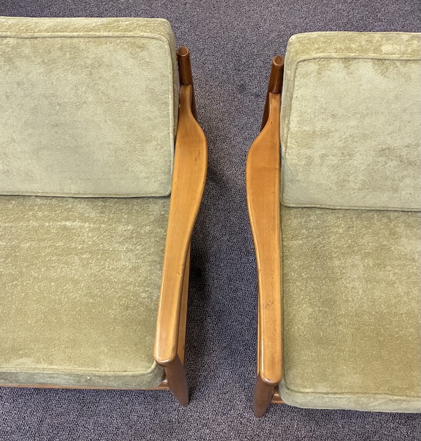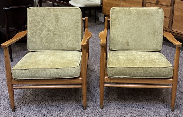 Item #DMC16B Pair of Mid Century Modern Teak Frame & Cushioned Lounge Chairs c.1960