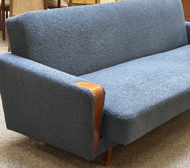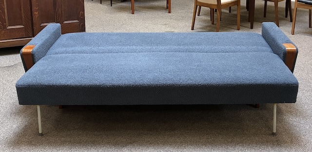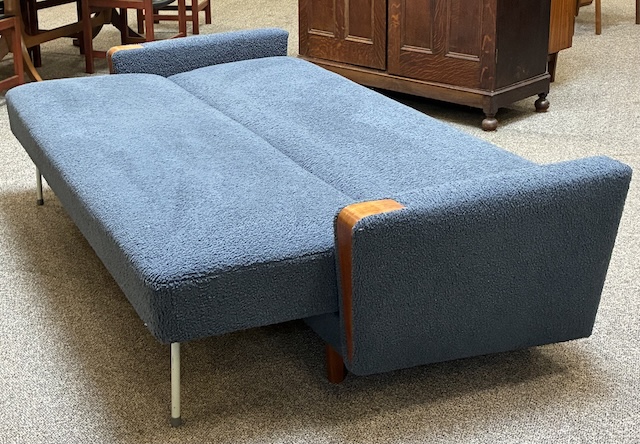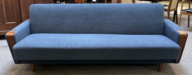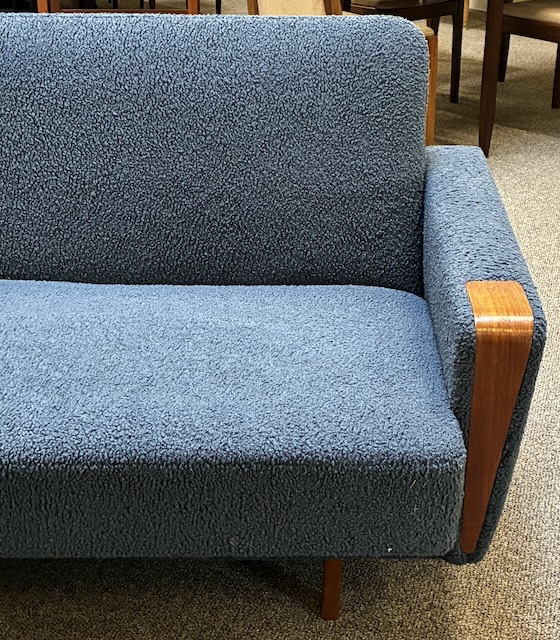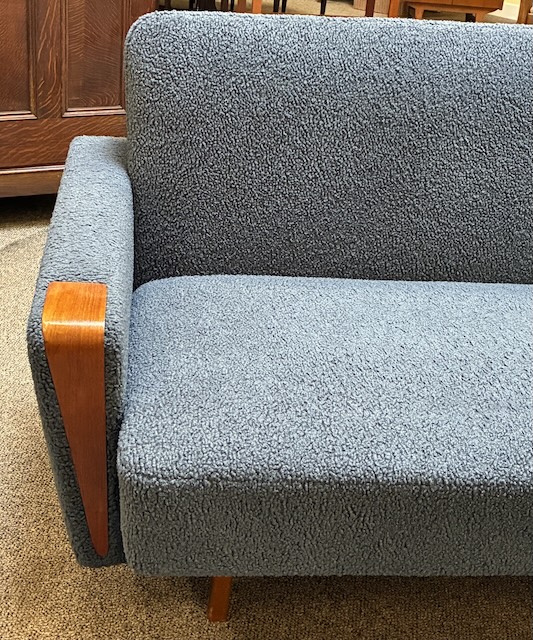 Item #TBD1 Mid Century Modern Upholstered &. Teak. Frame Sofa c.1960