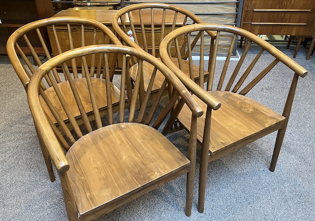 Contemporary Indonesia Import Solid Teak "Sunburst" Barrel Back Dining Chairs