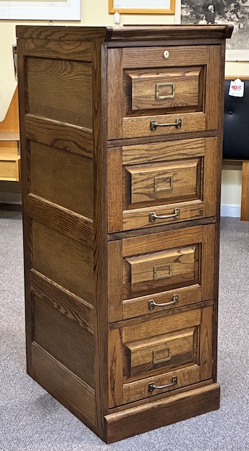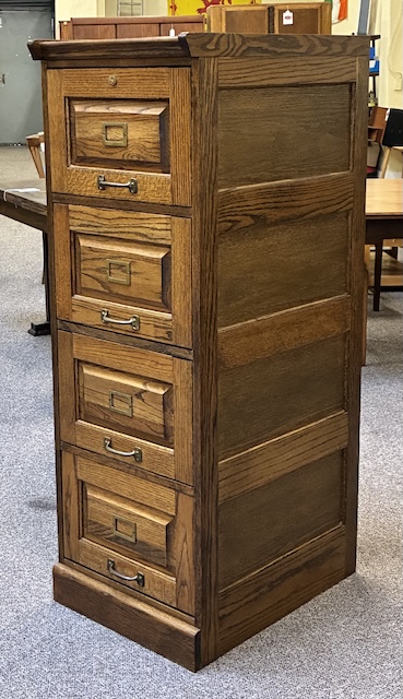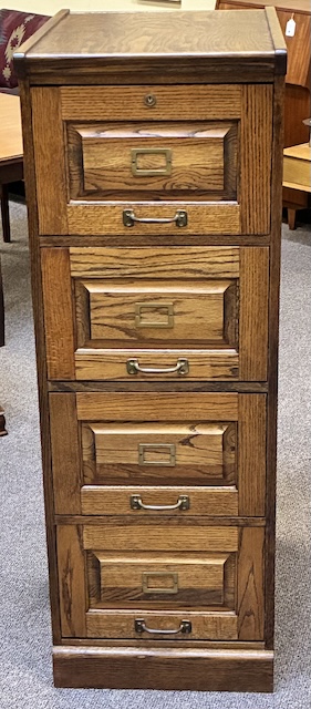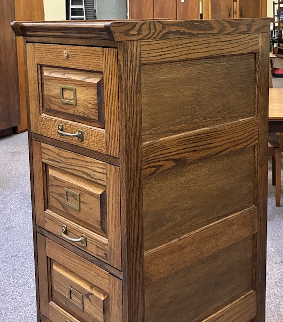 Item #MJM28 Single Vintage Free Standing Mission Oak Four Drawer File Cabinet / Storage 20th c.