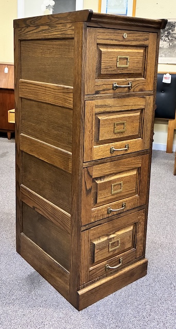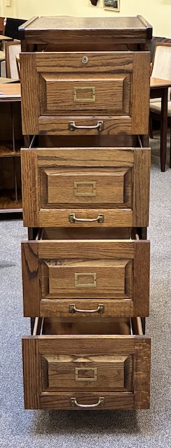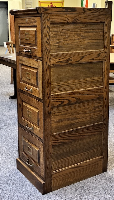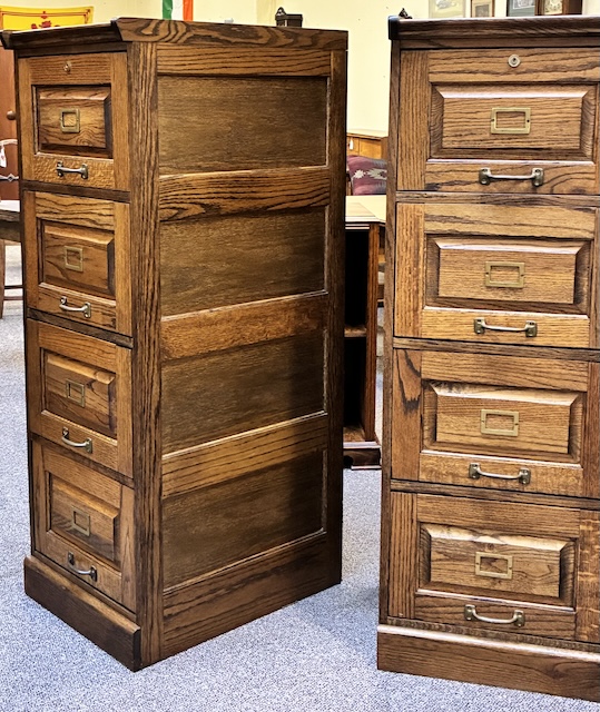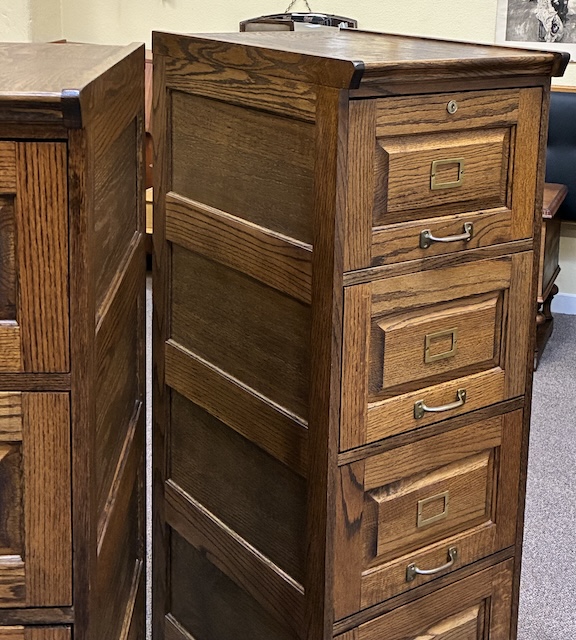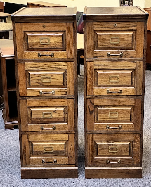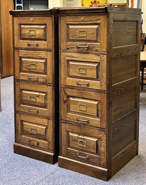 Item #MJM28P Pair of Vintage Free Standing Mission Oak Four Drawer File Cabinets / Storage 20th c.