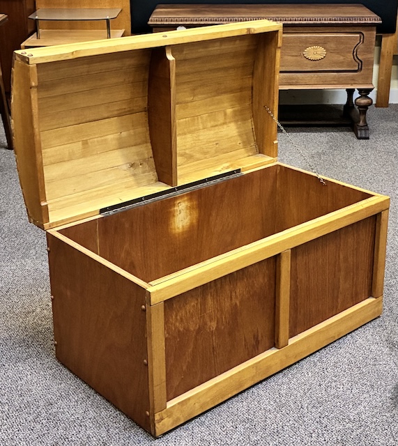 Item #MM18 Vintage Teak Dome Top Trunk / Blanket / Toy Chest c.1960
