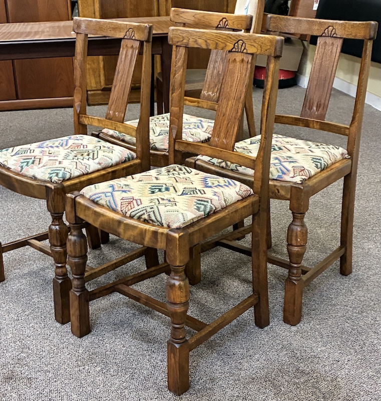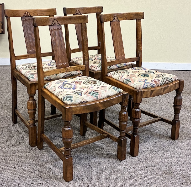 Item #MM21 Set of Four Vintage English Oak Dining Chairs c.1940