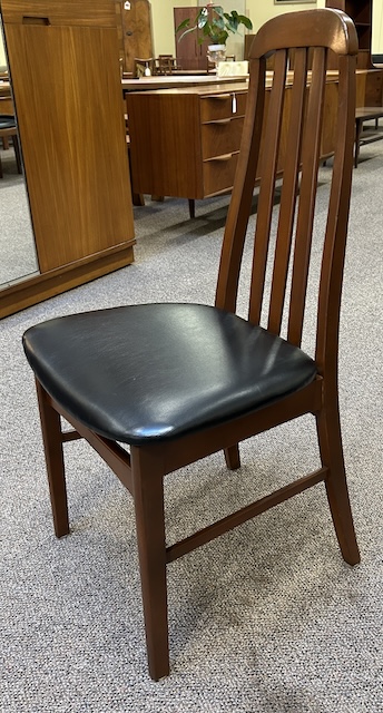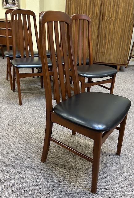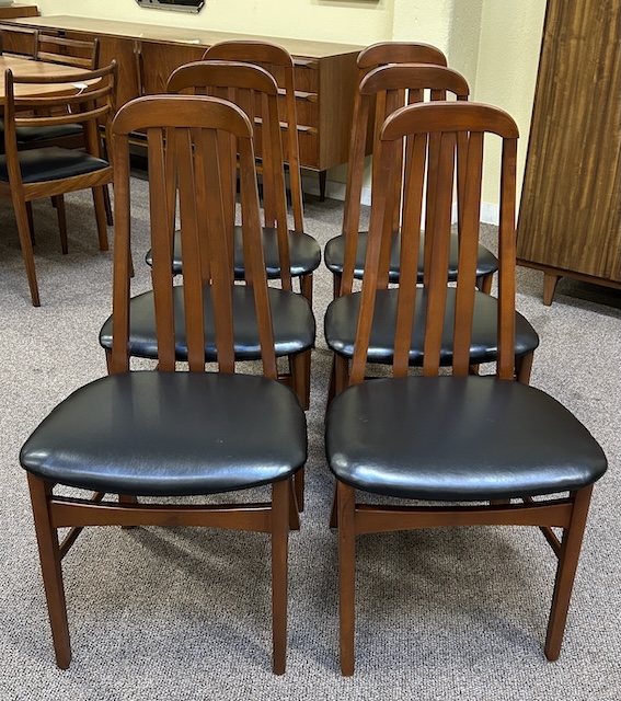 Item #PB29 Set of Six Mid Century Modern Teak Framed High Back Dining Chairs w/ Black Vinyl Seats c.1960