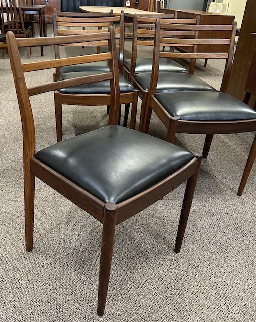 Item #PB71 Set of Six Mid Century Modern Teak Framed Dining Chairs c.1960