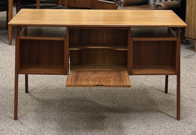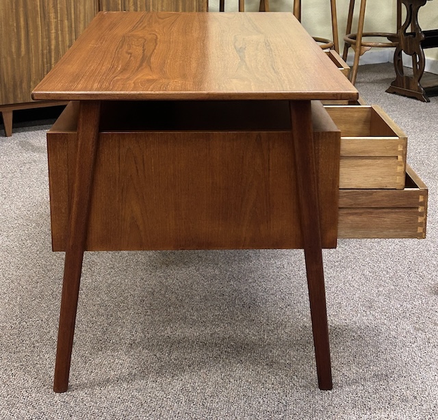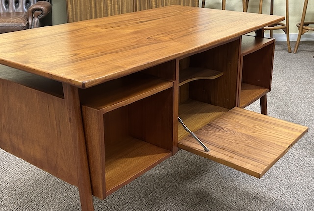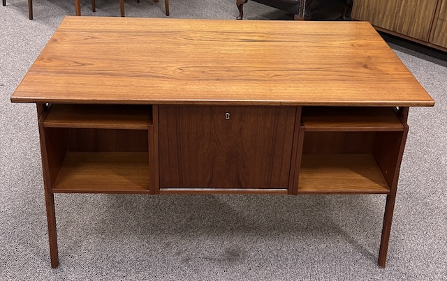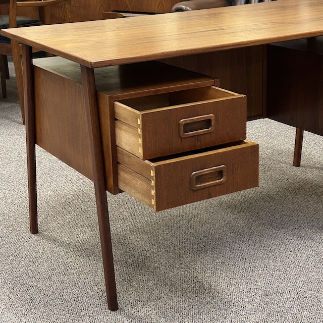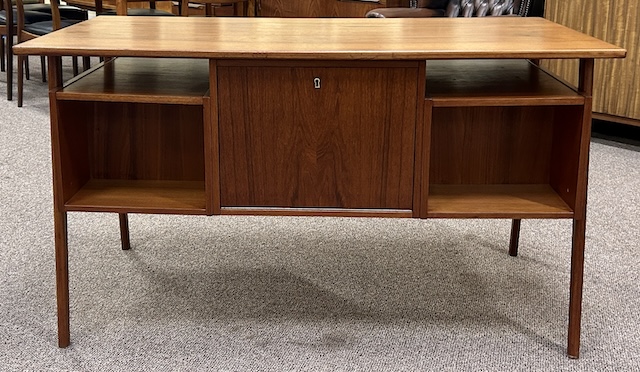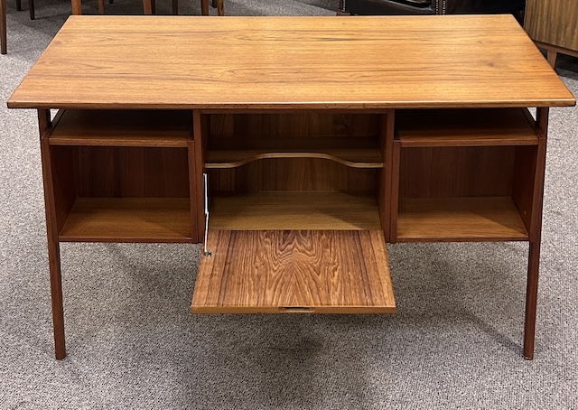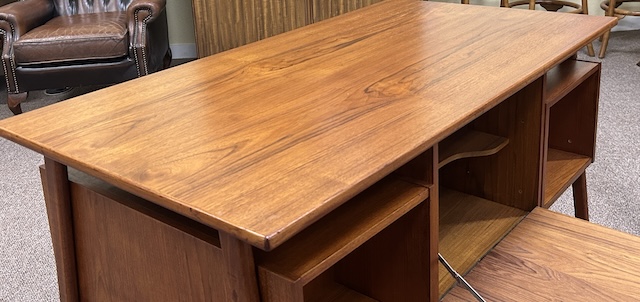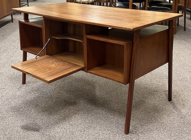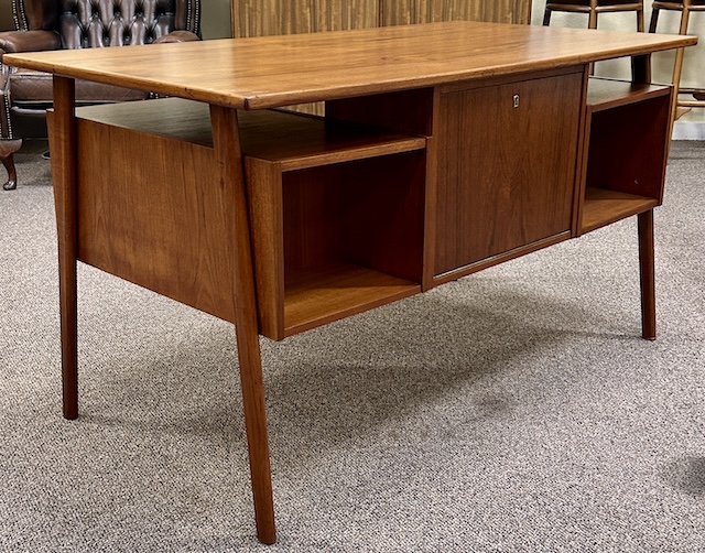 Item #PB86 Mid Century Danish Modern Levitating Teak Desk w/ Mini-Bar c.1960