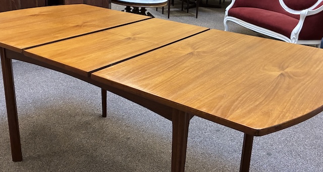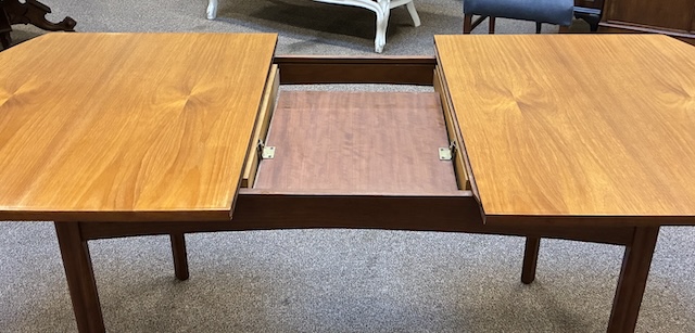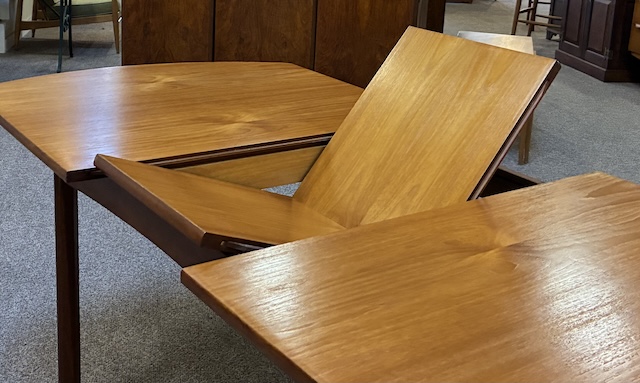 Item #PC107 Mid Century Modern Extending Teak Dining Table w/ Butterfly Leaf c.1960