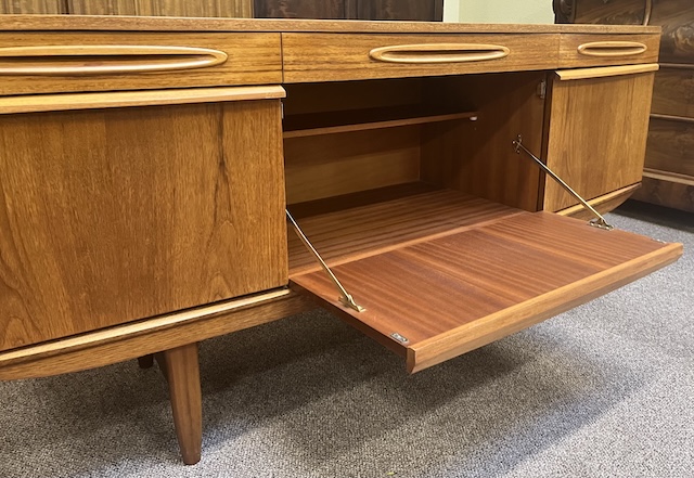 c.1960 Scandinavian Design - UK Import - Beautiful Drop Front Credenza w/ Drawers & Storage