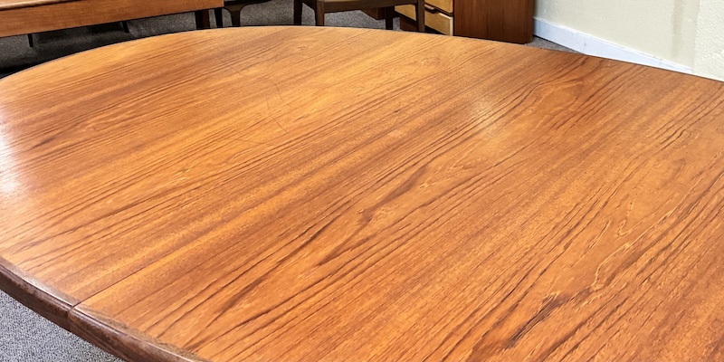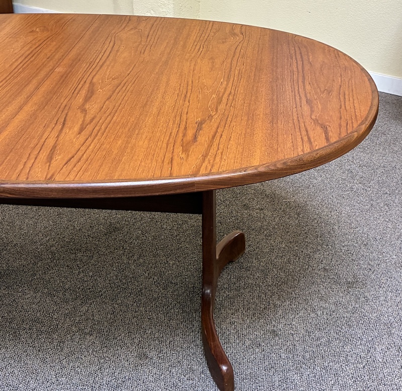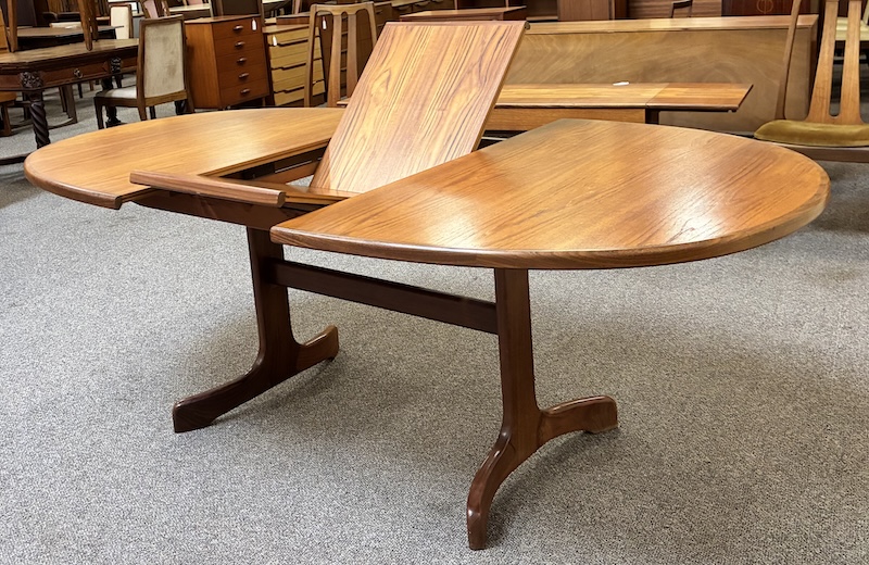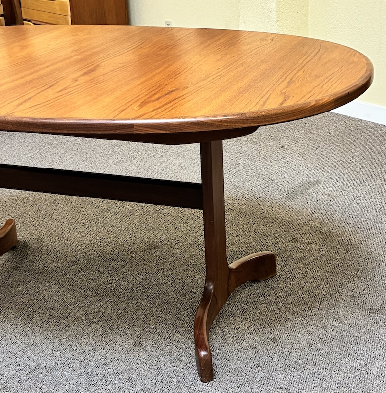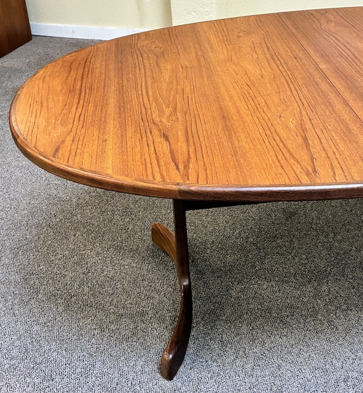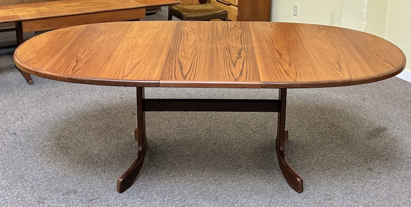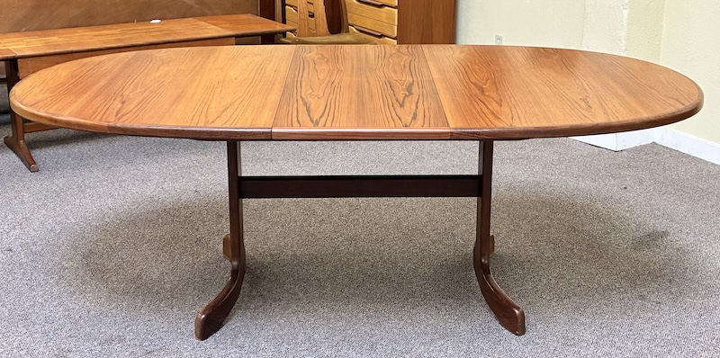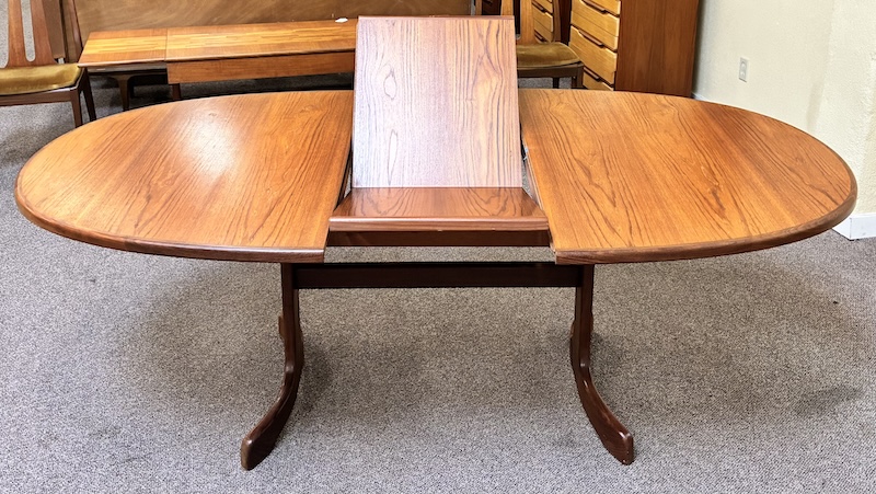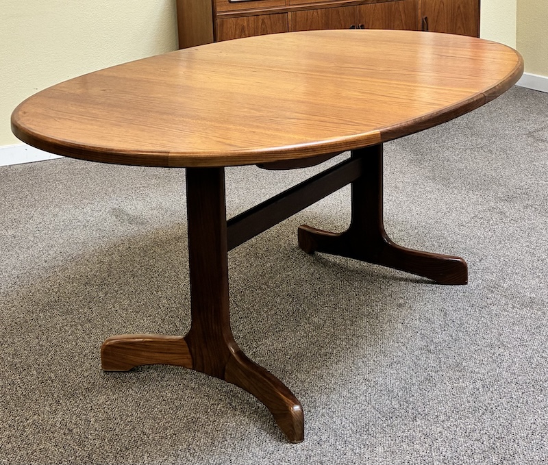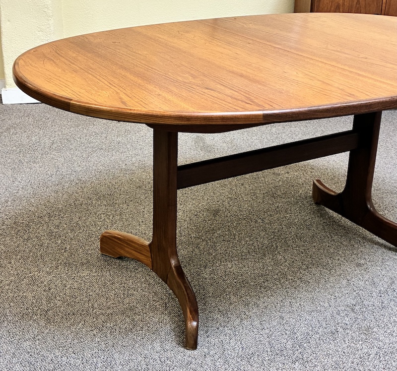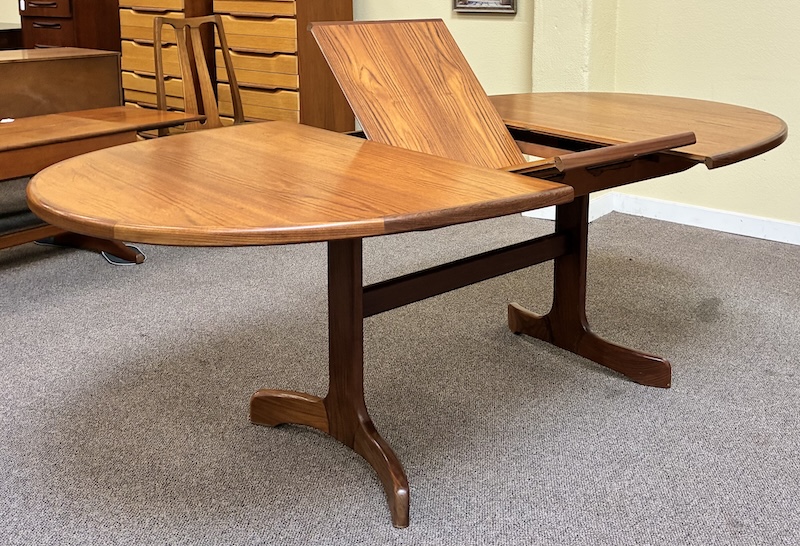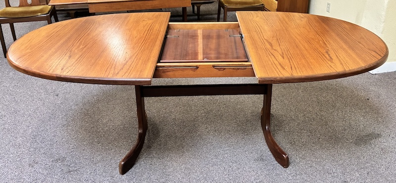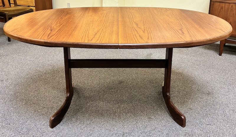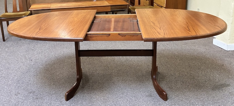 Item #PD118 Vintage Extending Oval Dining Table w/ Butterfly Leaf & Whale Tail Trestle Base by G-Plan c.1960