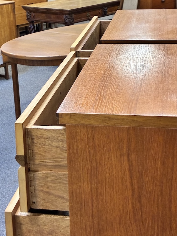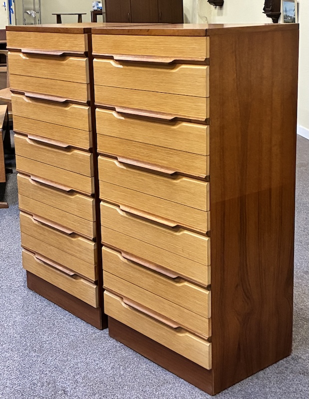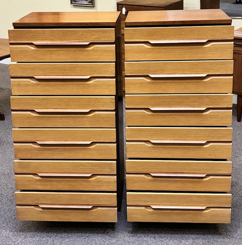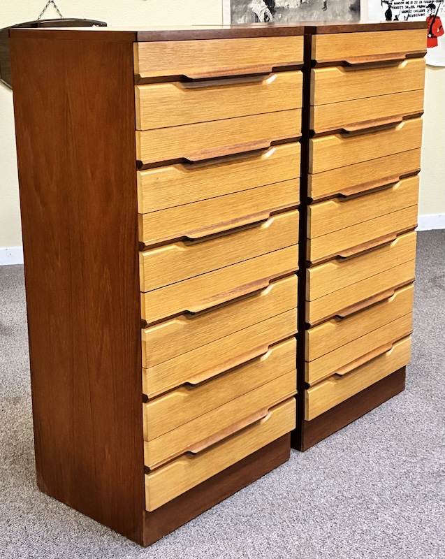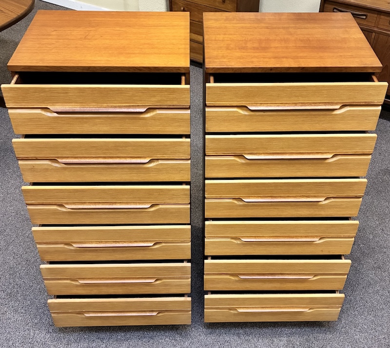 Item #PD40C Pair of Tall Mid Century Modern Teak Dressers by Remploy, UK c.1960
