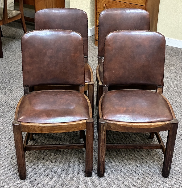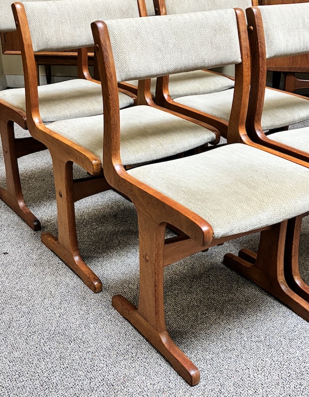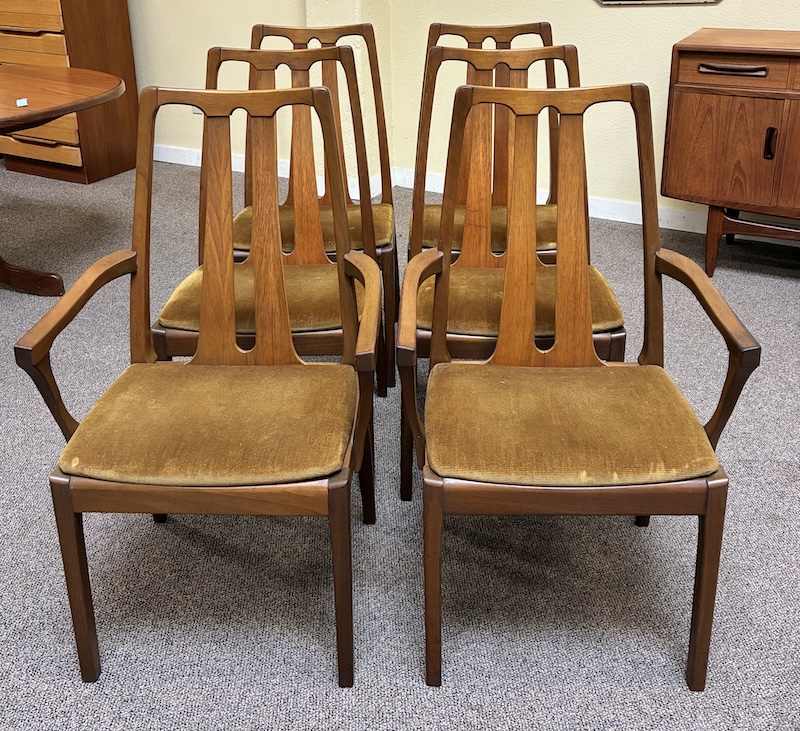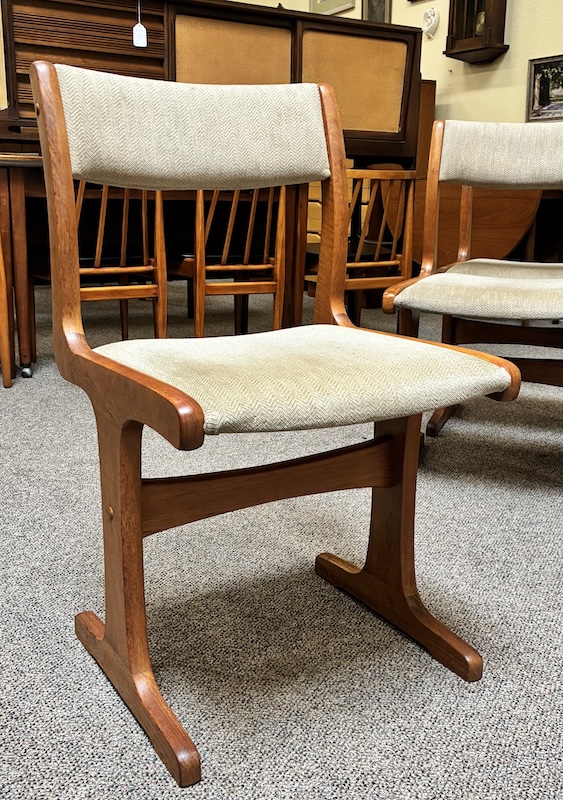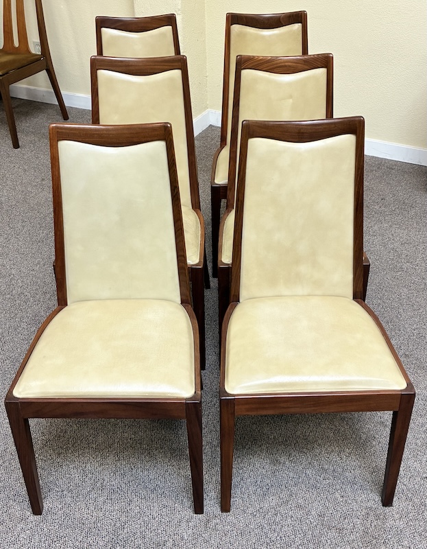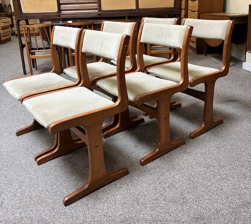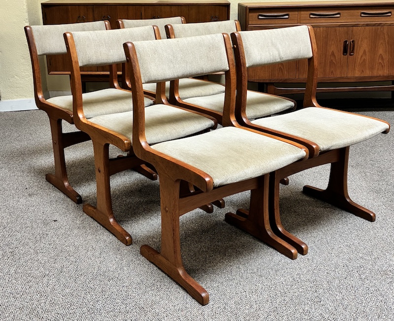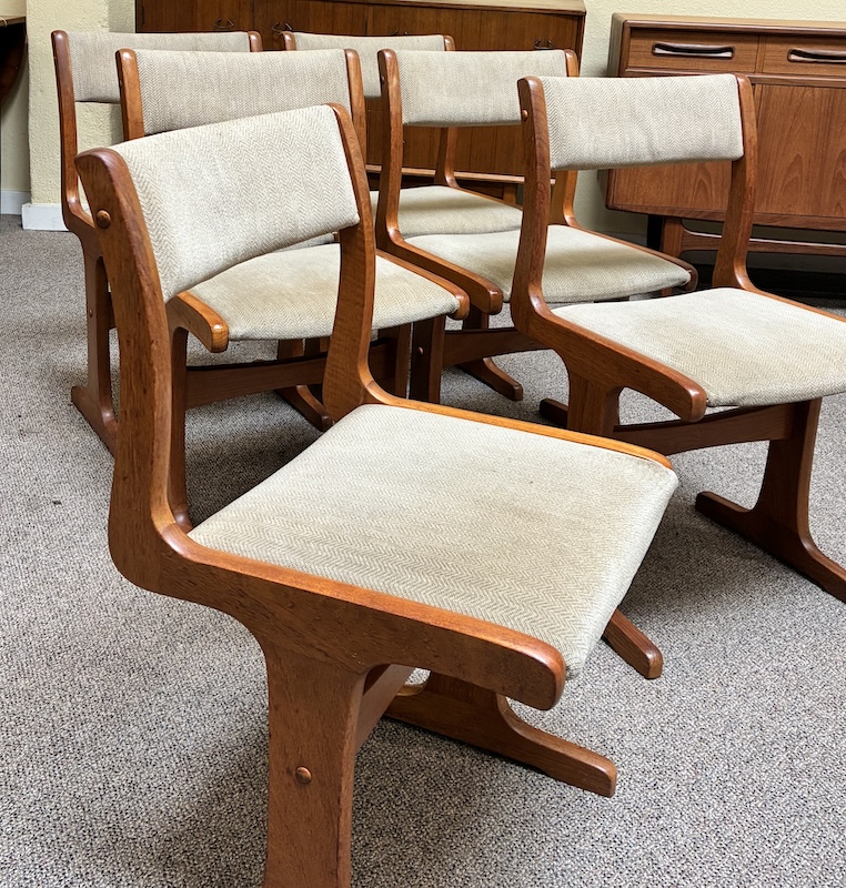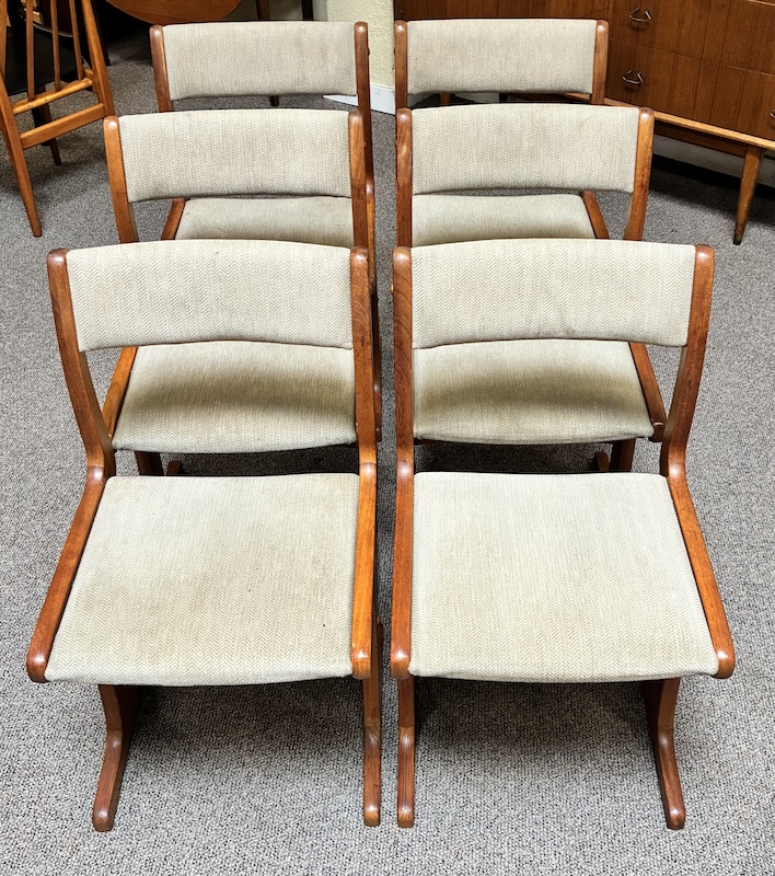 Item #PD49 Set of Six Mid Century Modern Teak & Upholstered Dining Chairs