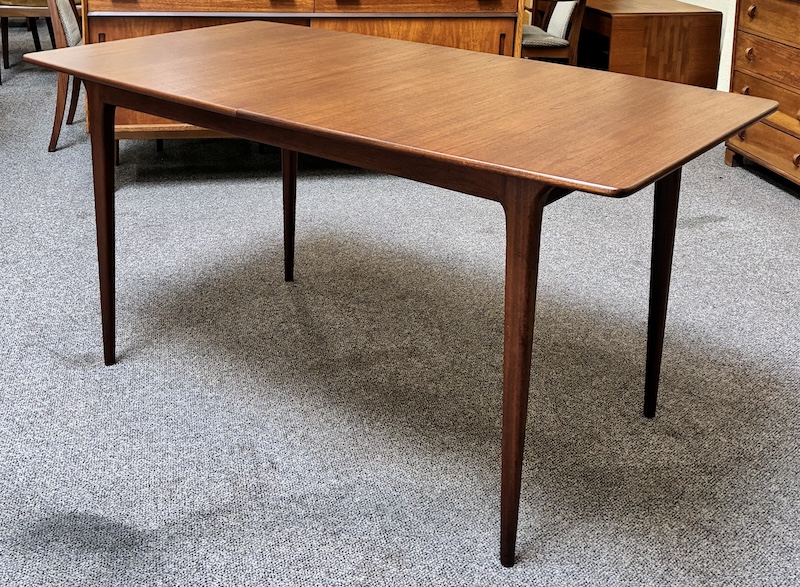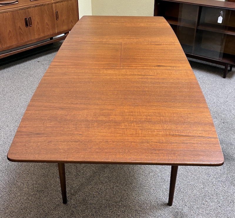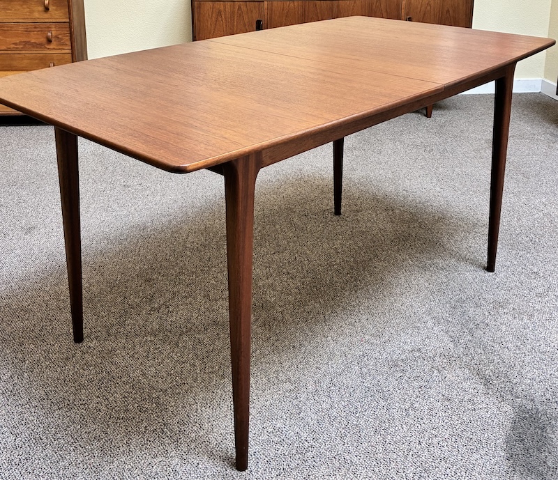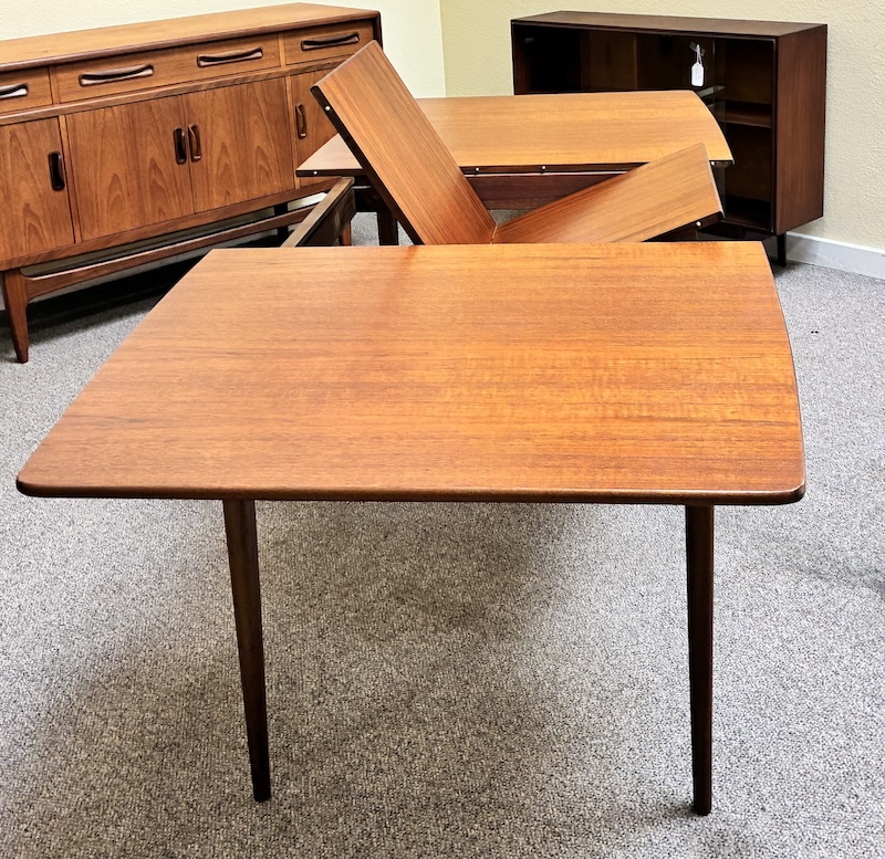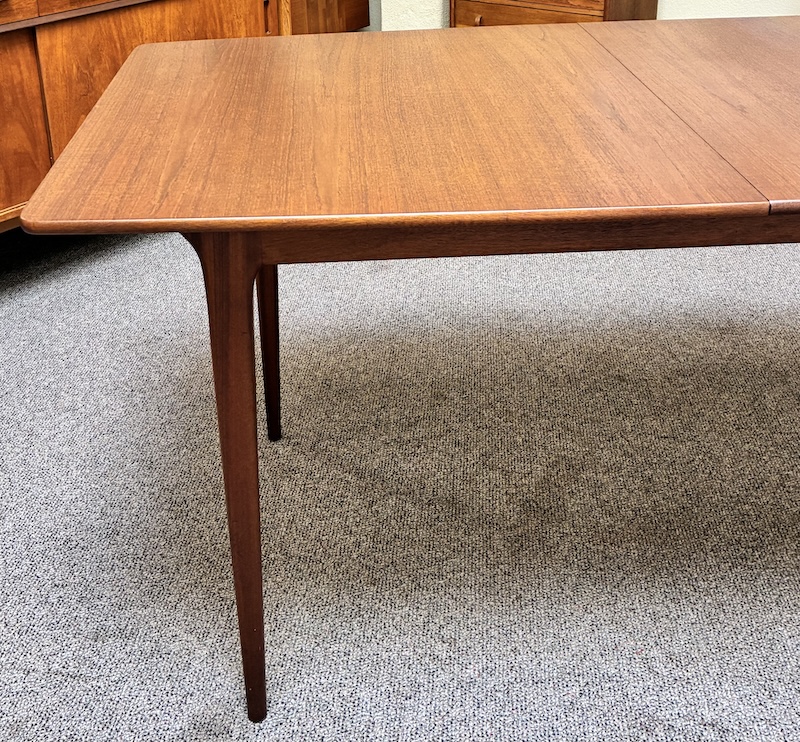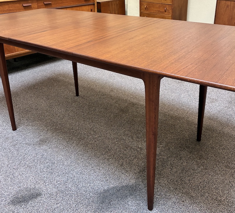 Item #PD82 Mid Century Modern Extending Teak Dining Table w/ Butterfly Leaf & Tapered Ends by McIntosh c.1960